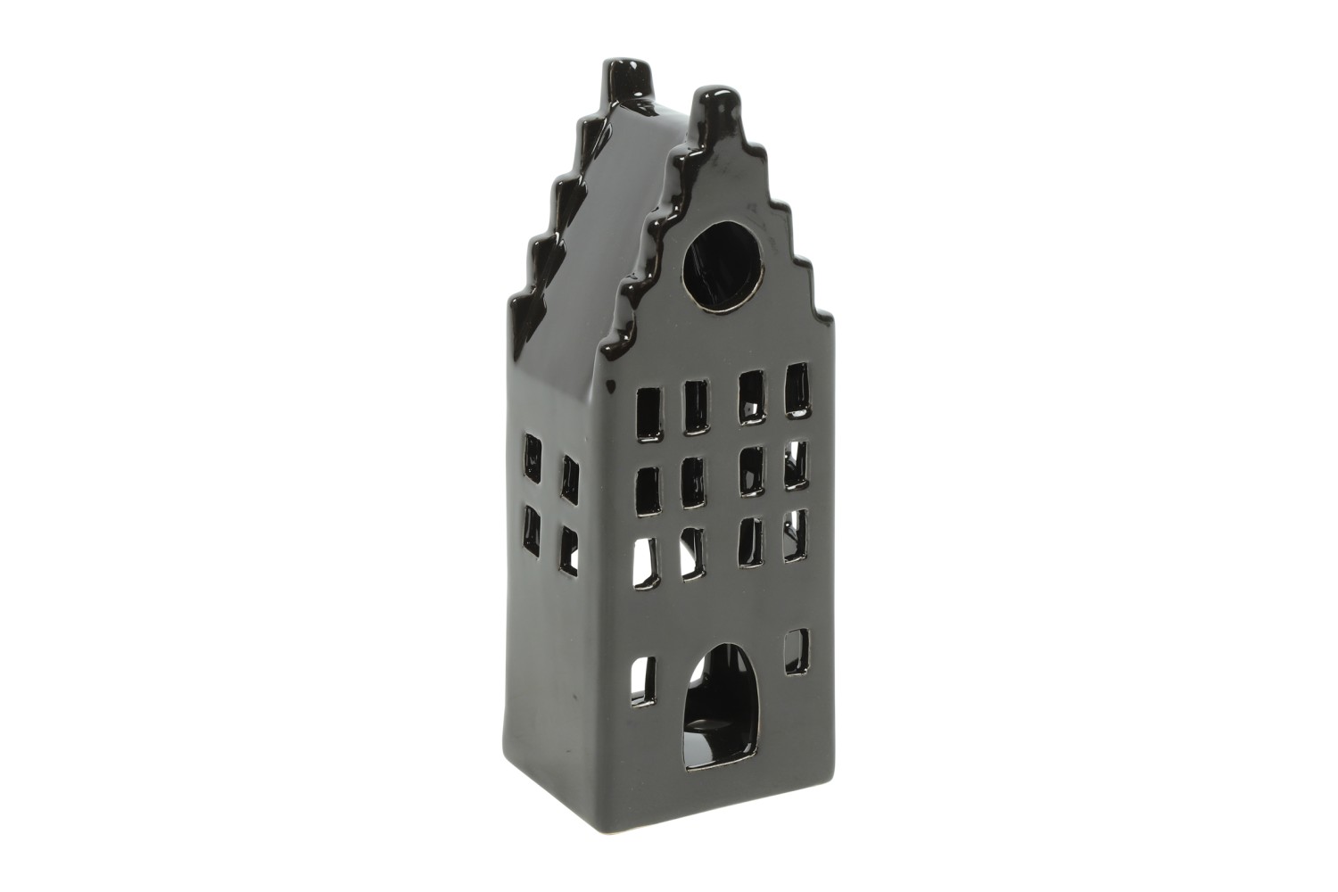 Tijd voor de winter met dit zwarte theelicht met huisje van steen. Dit verfijnde decoratieve stuk maakt elke ruimte klaar voor de winterse dagen en heeft een unieke vorm die het een opvallend pronkstuk maakt voor elke ruimte, of het nu op de vensterbank, op een kast of elders wordt geplaatst. Voeg dit prachtige decoratie stuk toe aan jouw kerstassortiment.