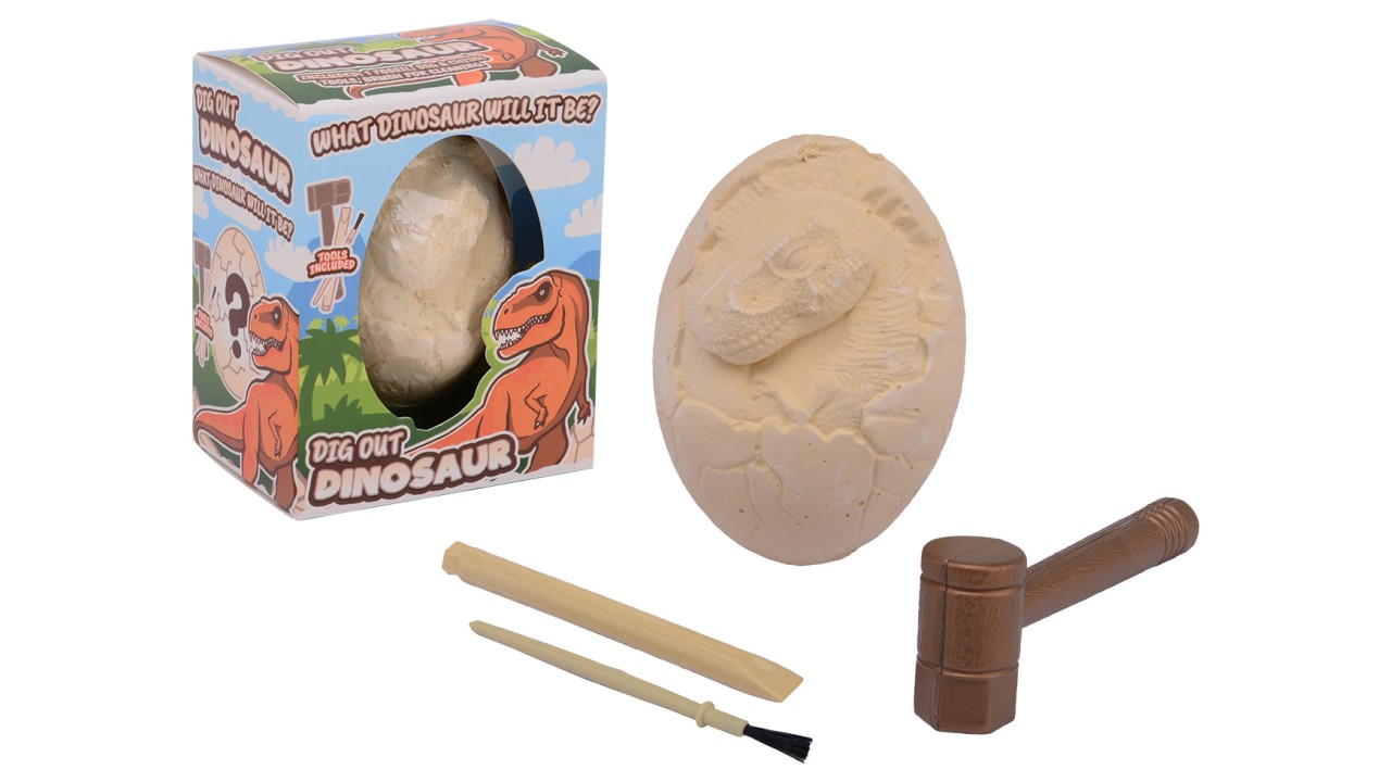 Je ontvangt 1 uithak dino ei fossiel inclusief gereedschap.