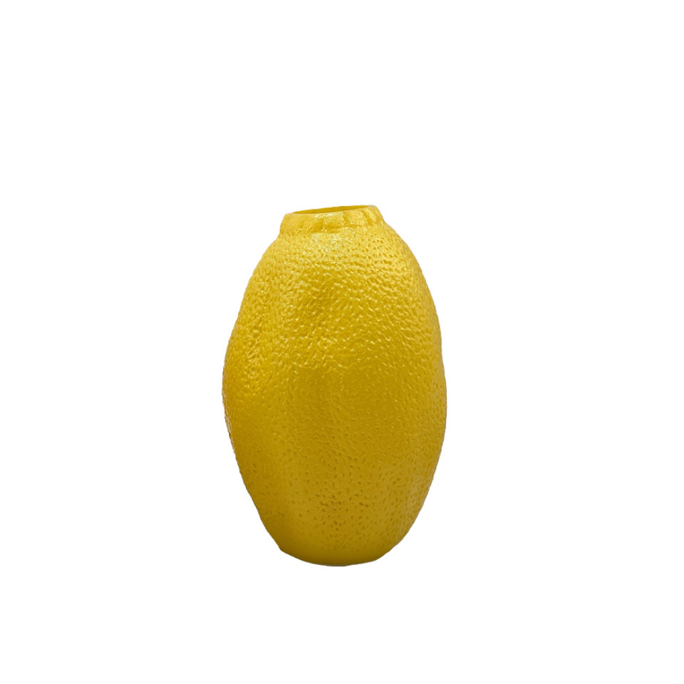 Het transparante glas vangt het licht prachtig en benadrukt de levendige citroenvorm, terwijl de stevige basis zorgt voor stabiliteit. Perfect voor verse bloemen, takjes of gewoon als decoratief object dat een vrolijke en frisse sfeer toevoegt aan je woonruimte.