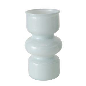 De vaas is gemaakt van gelakt glas met een subtiele glans. De afgeronde vormen geven het ontwerp een speels en eigentijds karakter. Met afmetingen van ca. 10,5 × 10,5 × 18 cm is de vaas ideaal voor een klein boeket bloemen, enkele takken of als decoratief object op zichzelf.