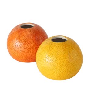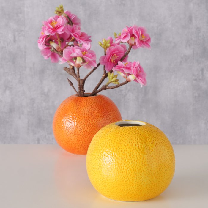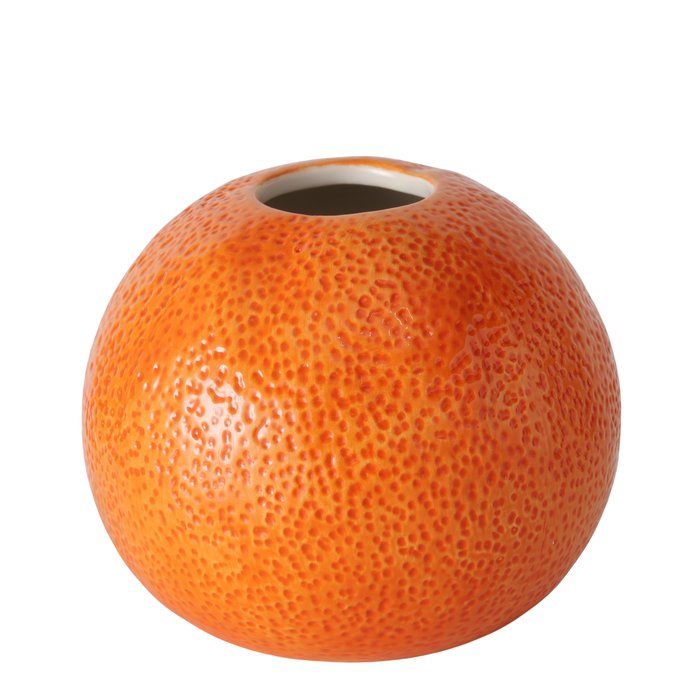 Vaas Orange is een speelse en decoratieve keramieken vaas in de vorm van een sinaasappel. De realistische structuur en frisse kleur geven deze vaas een vrolijke en opvallende uitstraling.