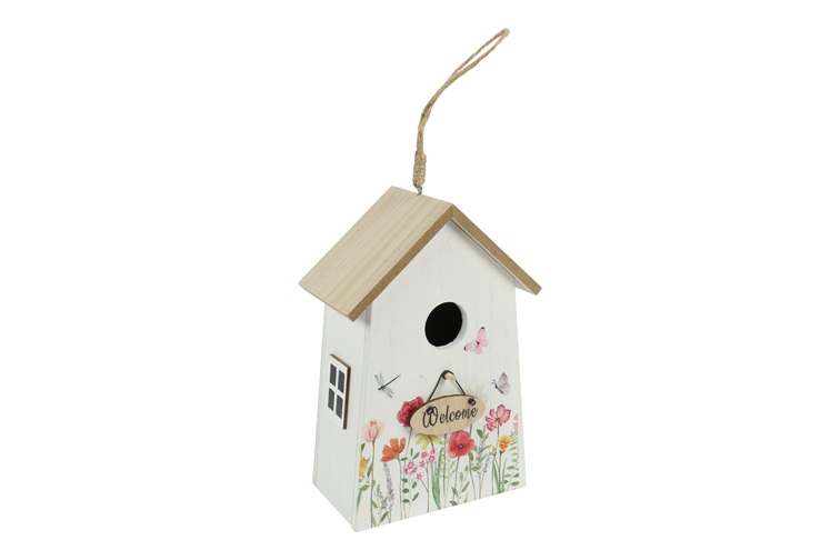 Vogelhuis met bloemen Venna L wit is een sfeervol decoratief vogelhuisje met een frisse en landelijke uitstraling. De witte basis in combinatie met de kleurrijke bloemenprint en het kleine “Welcome”-bordje geeft dit huisje een vrolijk en uitnodigend karakter.