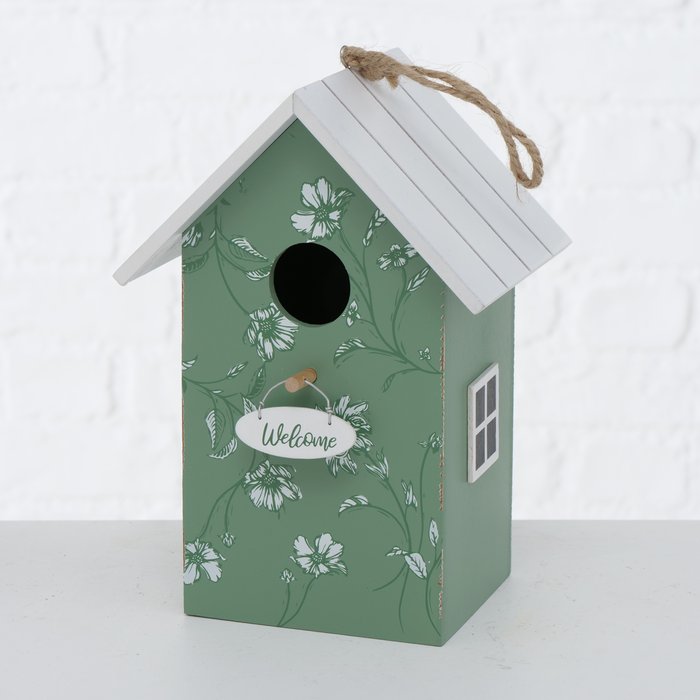 Leuk Vogelhuisje Silka, 2 ass., H 22 cm, MDF, Floraal, Groen/Wit, verkrijgbaar in 2 verschillende kleuren!