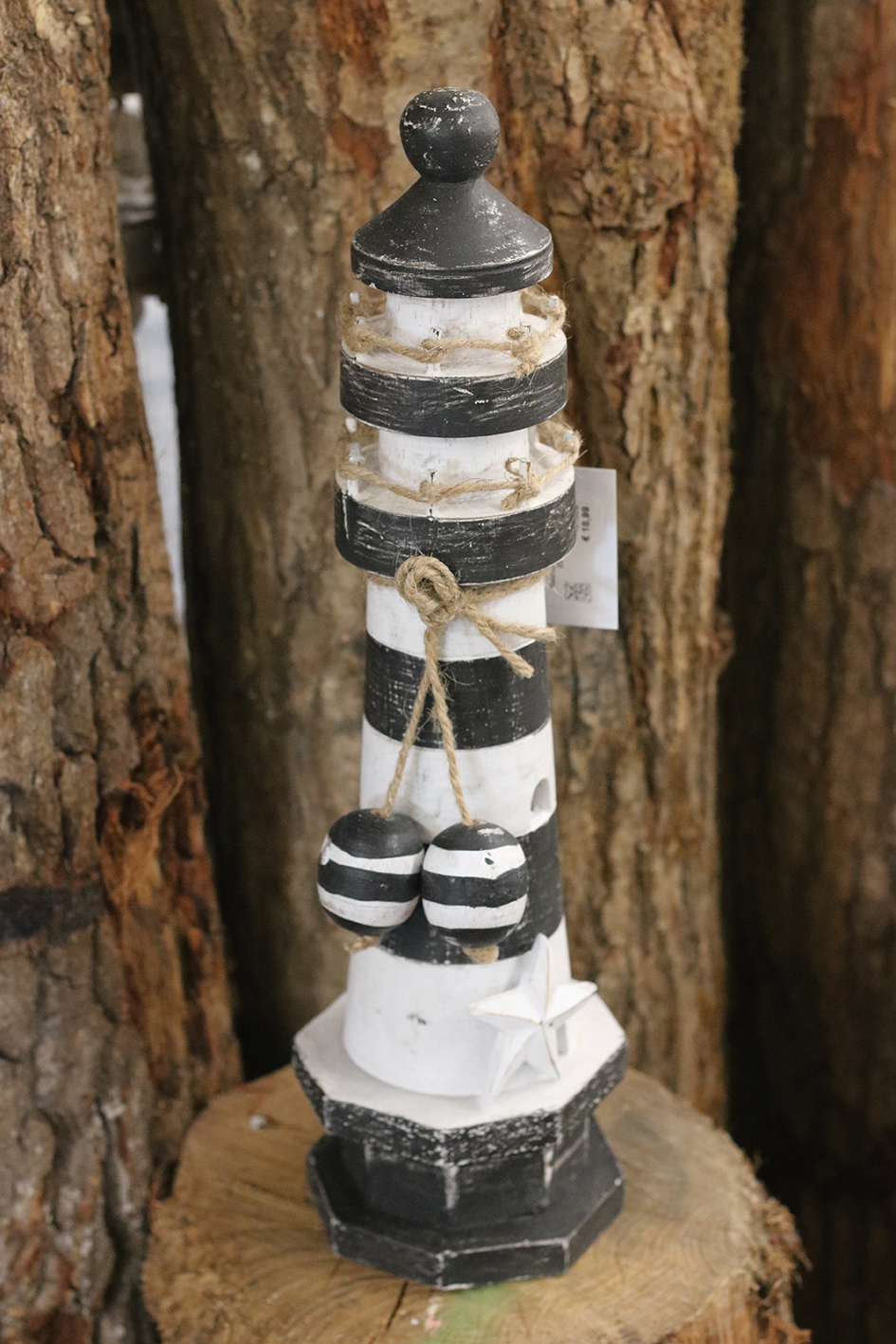 Leuke Vuurtoren Hout 40cm Zwart/wit, Omdat dit een handgemaakt product is kan het iets afwijkend zijn van de foto!