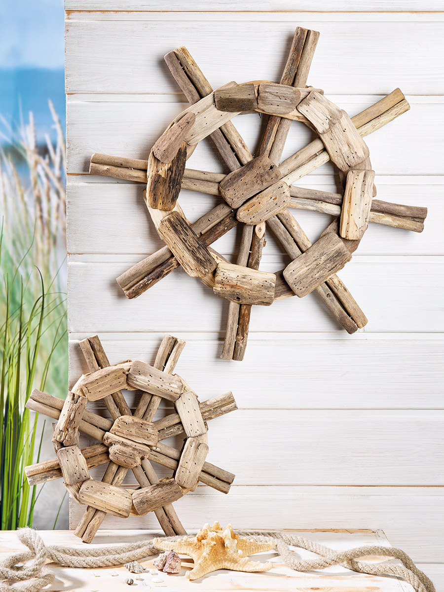 Wanddeco stuurwiel (maritiem) gemaakt van hout in naturelkleur