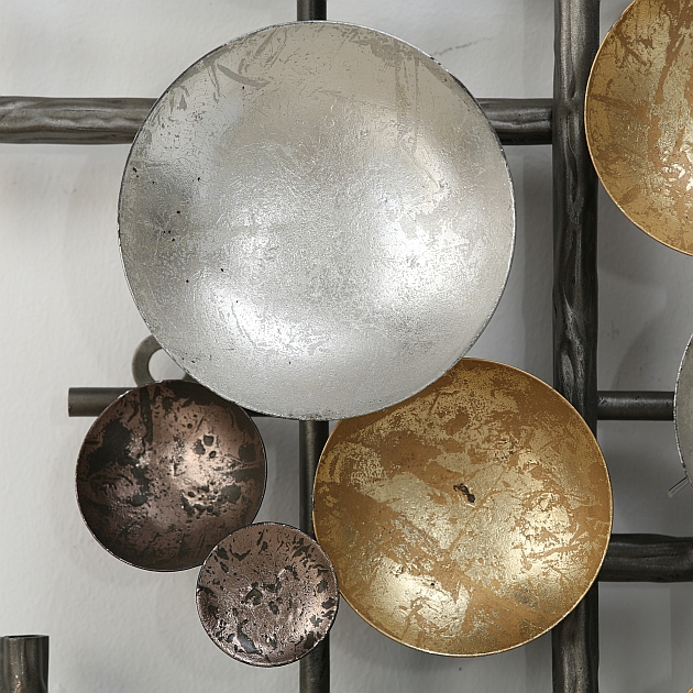 Deze wanddecoratie is een echte blikvanger aan de muur. Prachtige metaaltinten vangen het licht en zullen een warme sfeer geven aan uw interieur.