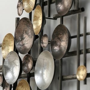 Prachtige wanddecoratie met metaaltinten in zilver, goud en zwart.