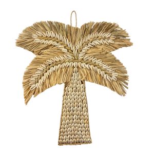 Deze wanddecoratie in de vorm van een palmboom is gemaakt van natuurlijke materialen en rijk afgewerkt met schelpen. Hij direct voor een zomerse, beachy sfeer in het interieur. De combinatie van gevlochten vezels en schelpen geeft het geheel een warme en natuurlijke uitstraling.