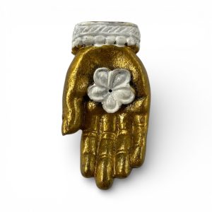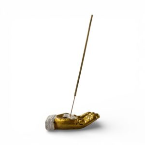Deze wierookhouder in de vorm van een hand heeft een afmeting van ca. 9 x 4.5 cm. De handvorm geeft het item een serene en tijdloze uitstraling en is praktisch voor het branden van wierookstokjes. De witte uitvoering zorgt voor een lichte en rustige uitstraling, waardoor het ontwerp mooi tot zijn recht komt.