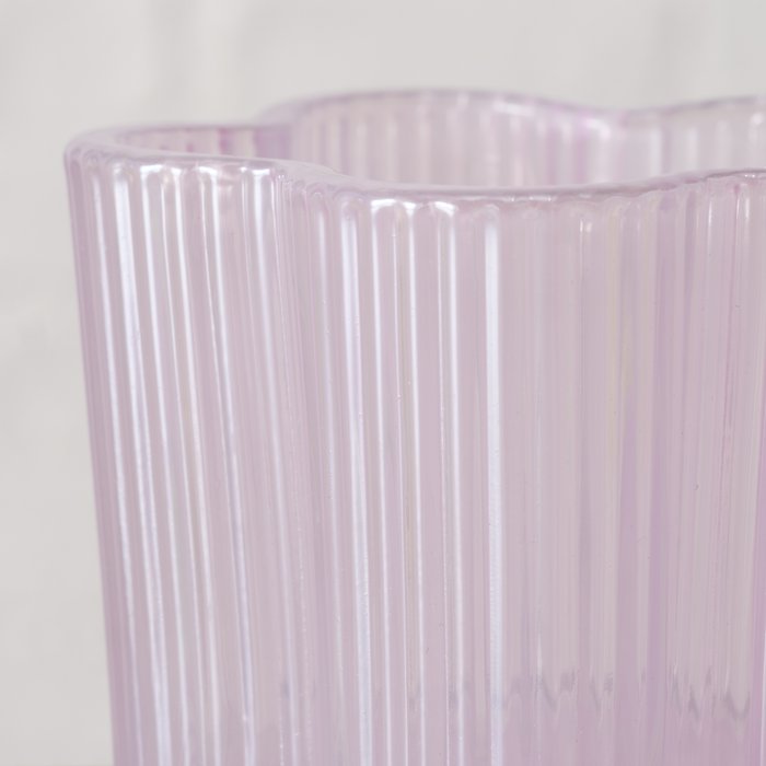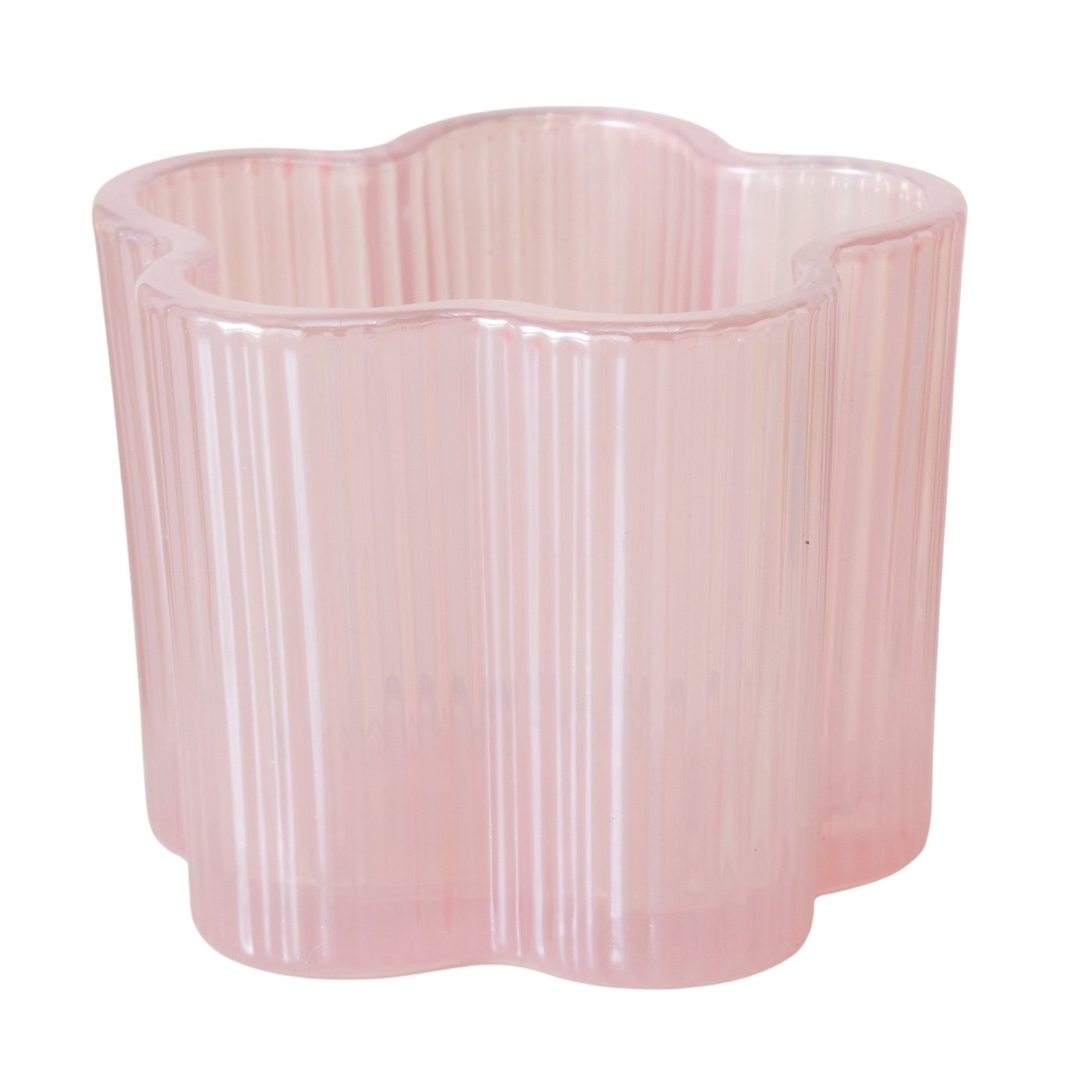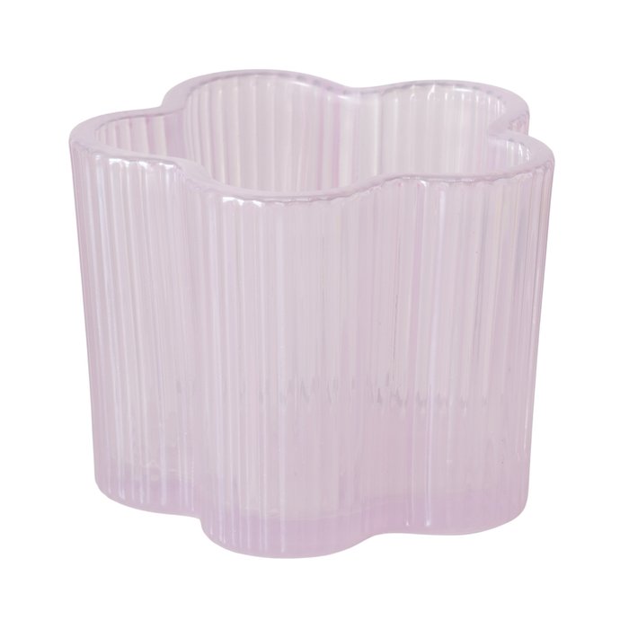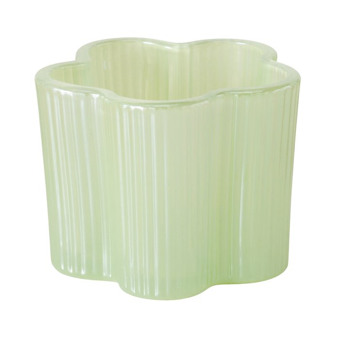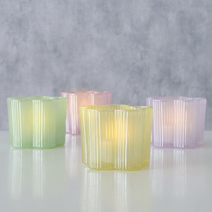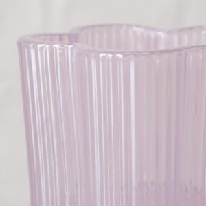 Windlicht Fiona is een sfeervol glazen windlicht met een subtiele ribbelstructuur en een speelse, golvende bovenzijde. Verkrijgbaar in vier zachte pastelkleuren, waaronder groen, lichtroze, paars en geel, zorgt dit windlicht voor een frisse en vrolijke uitstraling in ieder interieur.