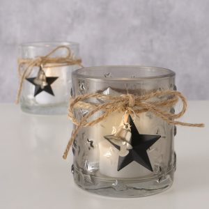 Theelichthouder met zilveren ster – sfeervol met een vleugje kerstmagie
