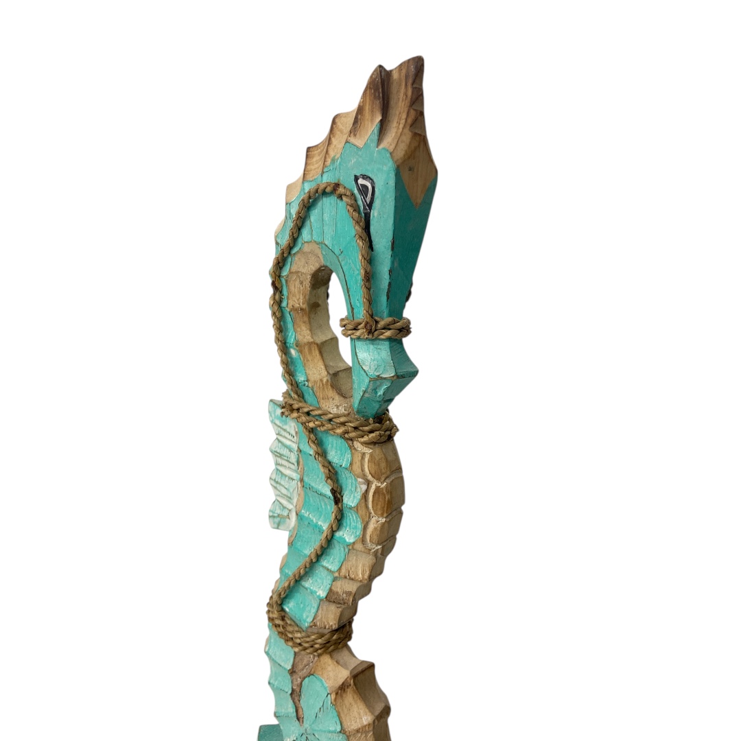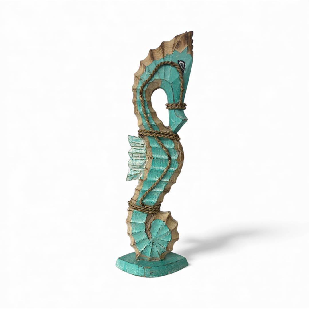 Dit turquoise houten zeepaard geeft jouw interieur direct een zomerse en maritieme uitstraling. De combinatie van turquoise met naturel hout zorgt voor een vrolijke en frisse look. Perfect voor in de woonkamer, badkamer of strandhuisje.