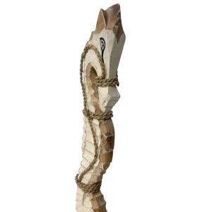 Het beeld is ca. 50 x 12 en handgemaakt in Indonesië. Door het natuurlijke materiaal kunnen kleuren en vormen licht afwijken. Je ontvangt één exemplaar.