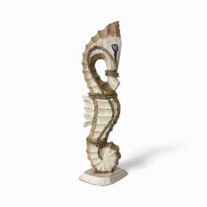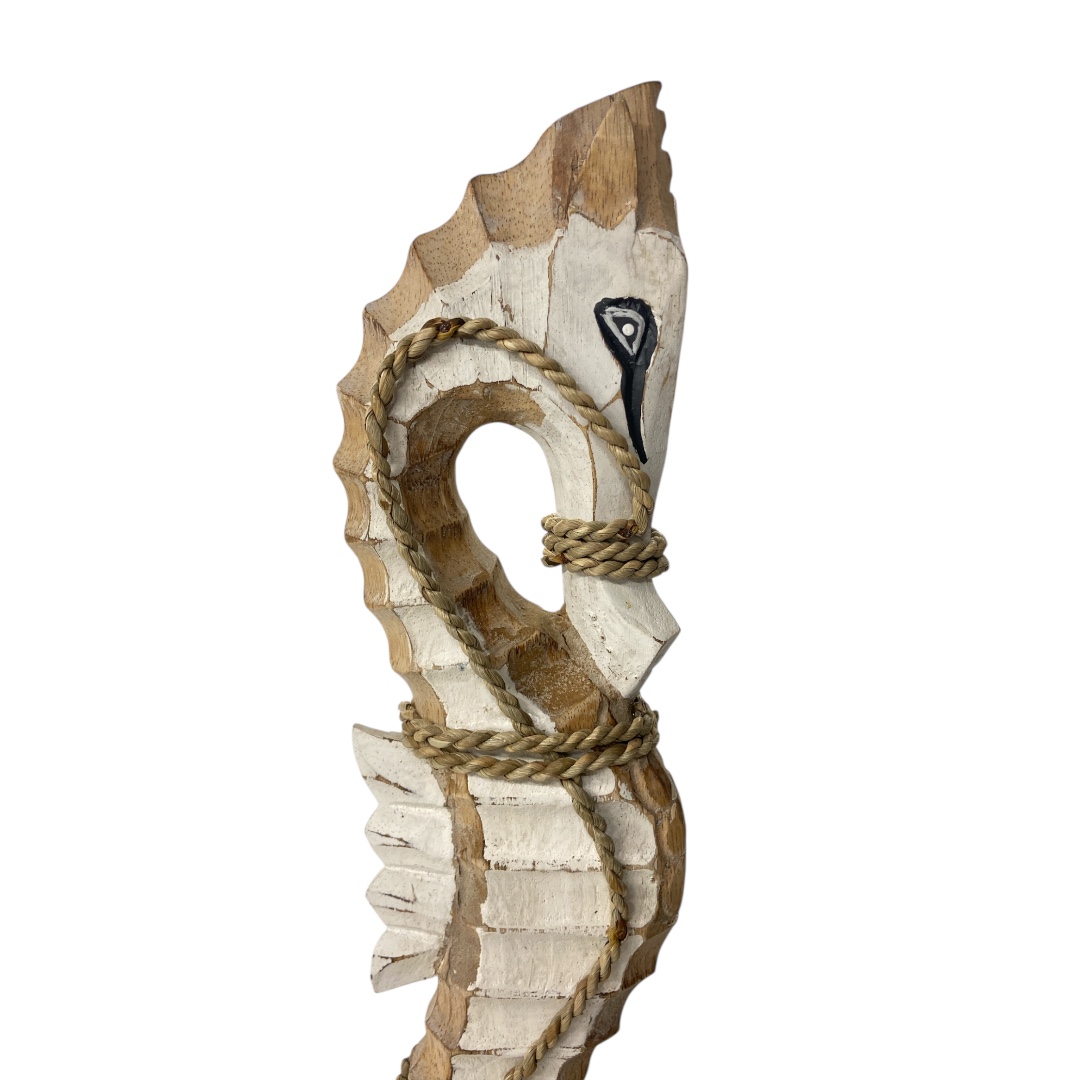Dit middelgrote witte houten zeepaard straalt rust en elegantie uit. De combinatie van wit met naturel hout geeft een tijdloze uitstraling die past in vrijwel elke lichte of maritieme woonstijl. Het beeld staat prachtig op een dressoir, wandmeubel, badkamerrek of haltafel en is ideaal als subtiel maar stijlvol decoratiestuk. Dankzij de rustige kleuren en natuurlijke materialen voegt het een kalme en harmonieuze sfeer toe aan elke ruimte.